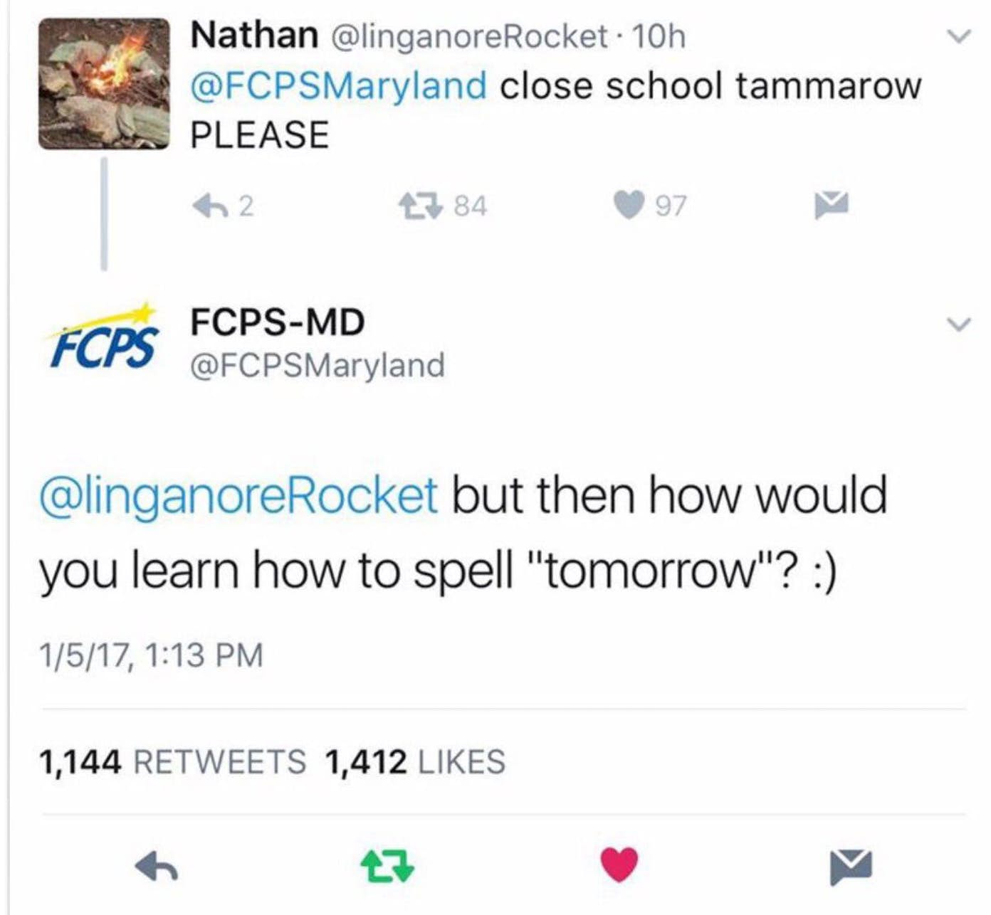 This particular story is not about someone being fired as a consequence of tweet, but it is kind of upsetting. Katy Nash was the person who managed the official Twitter account of Maryland’s Frederick County schools. She posted a tweet to respond to a student and shortly after she was forced to delete the post and was fired on the spot. When you see the tweets you would probably agree with us that no harm has been done and nothing inappropriate or racist was posted. Quite the opposite, actually – she probably deserves a better job somewhere she would be appreciated for her insight.