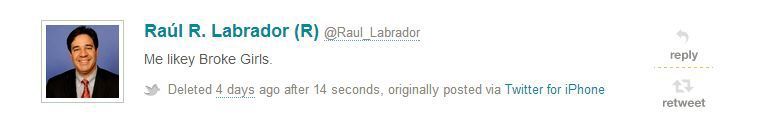 Okay, the situation here can probably be described as a misfortune. Phil Hardy was in charge of Congressman Raul Labrador’s Twitter account, but lost the job when he made the mistake of posting a personal tweet via Labrador’s account. He did not realize he was using the wrong account when he posted “Me likey Broke Girls.” Before you start wondering what exactly he had in mind with that, we have to note that Hardy was only trying to share he liked a certain TV show. Nothing kinky or dirty here. Phil Hardy realized what he had done just seconds after posting and quickly deleted the tweet, but it was enough to get him fired. We feel sorry for the guy because every one of us could make the same mistake if dealing with several accounts.