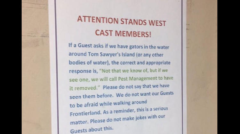 We have to be honest - this story is a bit strange. As you can see in the photo, the weird sign was uploaded in a Twitter post by a Disney intern. The text is for all employees to see and instructs everyone to not admit there actually were any alligators in the park area. The management wanted to curtail any fear the visitors might have and we totally get the idea behind it. The employee who posted the picture was immediately fired, but not long after that she was back on the job. The actions of the intern were controversial because they defied Disney’s policy, which clearly states that employees are not permitted to take photos of the service areas accessible only by staff members. This rule is set for a reason and many other companies apply it as well.