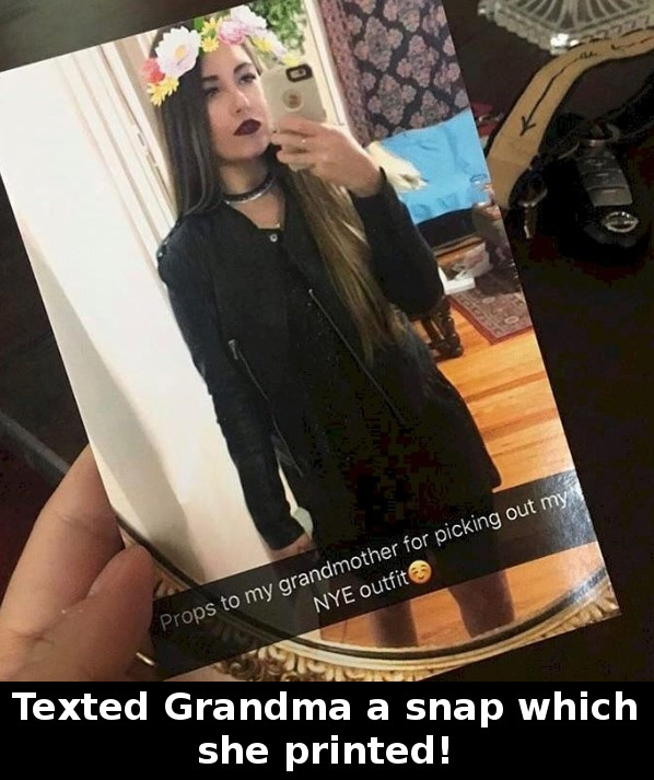 It is no secret that grandparents give anything to spend some time with their kids. Unfortunately, teenagers are always busy and they rarely stop by their grandparents’ house to see them. This girl probably realized that she was doing the same, so she decided that she would send a photo, at least. This is what she did. After her grandma received the text, she went a little further and printed the selfie! Eventually she even framed it, and we guess that it looks stunning, especially with that filter on! The granny was probably happy with the photo but her granddaughter should probably visit her more frequently.