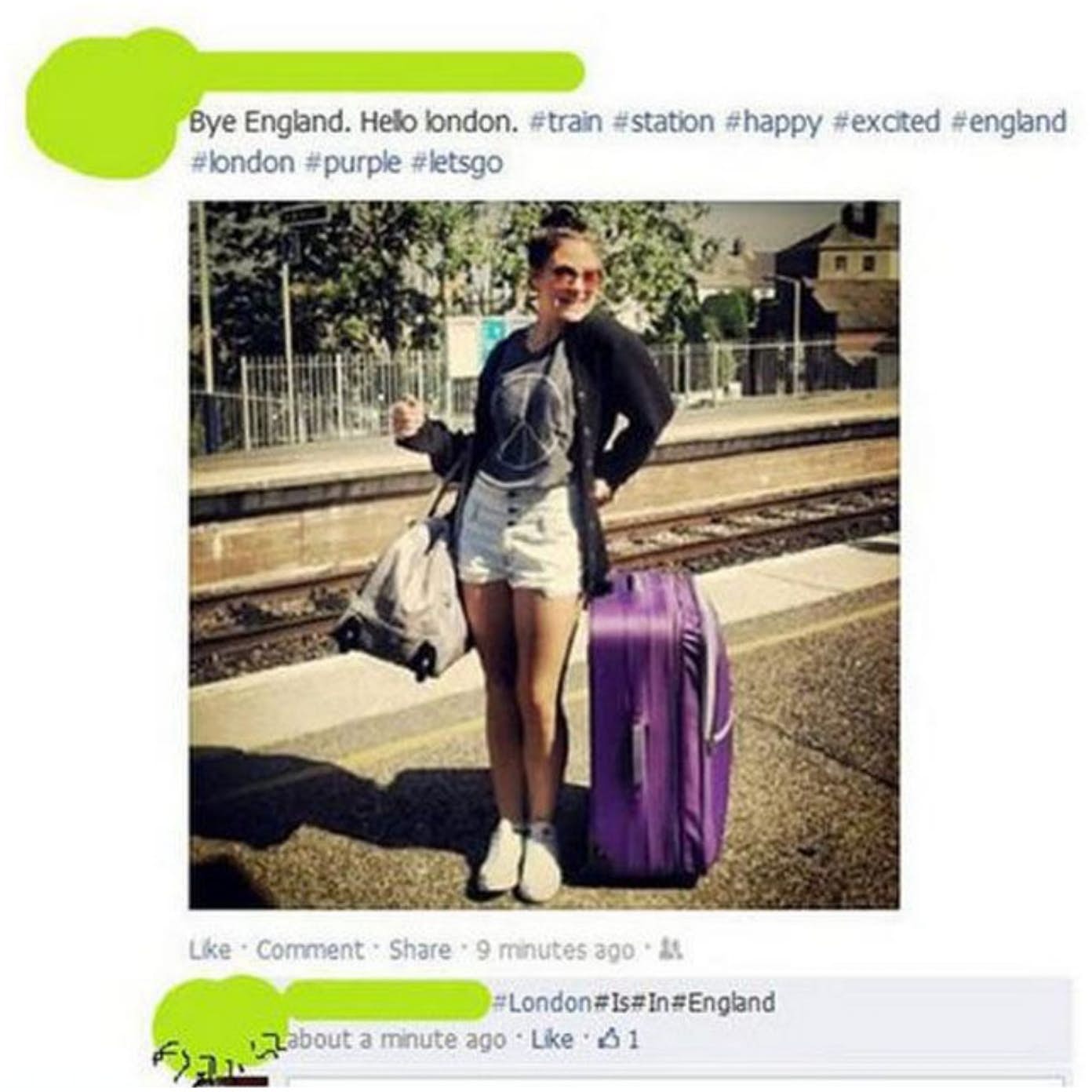 Unfortunately for a certain young lady who was chronicling her European travels via social media, other users took note of the fact she seemed to be under the impression that she was leaving England for London. For the record, London is the capital of England. More people live there than any other city in England.