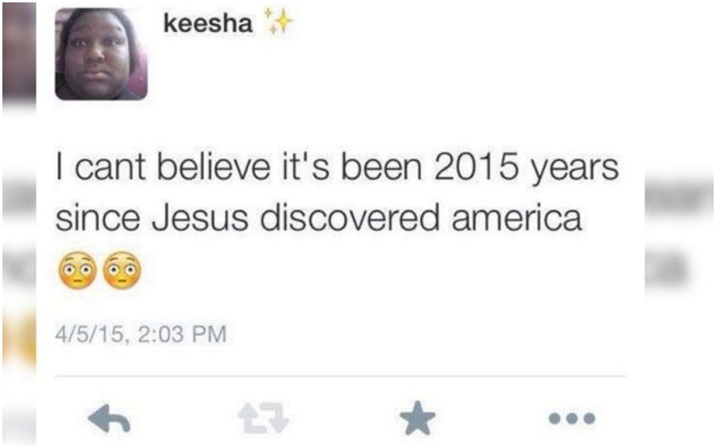 But apparently one social media user in 2015 thought Jesus had “discovered” America 2015 years earlier. Unless there’s a book or two missing from the Bible, Jesus most definitely did not do that.