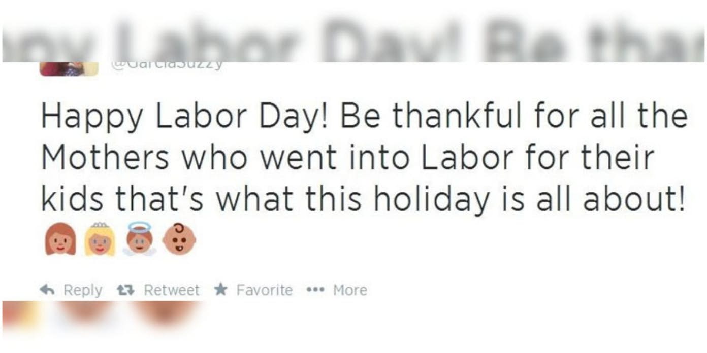 That didn’t stop one ignorant social media user from posting on Labor Day that her friends and followers should be thankful for all the women who have gone into labor.