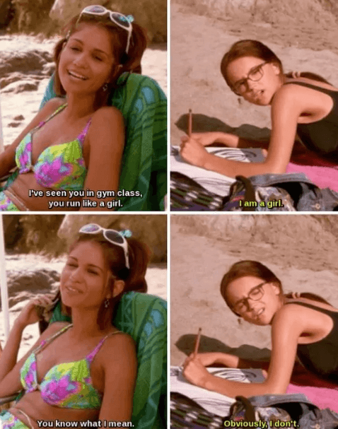 While it seemed like a typical teen feud, this scene would be considered as a sexist rant by most people today, because it clearly implies that girls are weak. The gender equity is huge factor now.