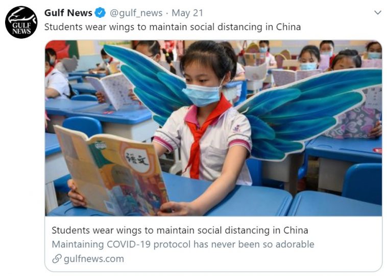 A clever Chinese teacher was inspired by the hats used in the 13th century to prevent gossip and realized the design is perfect for maintaining social distance in class. The result is awesome.