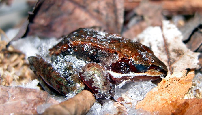 Although it sounds silly, this frog actually has a brilliant mechanism to get through the winter months. It freezes solid, and then in the spring, it’ll thaw so that it can go about its business again. Whilst frozen, it doesn’t breathe, its heart doesn’t beat, and its blood doesn’t flow.