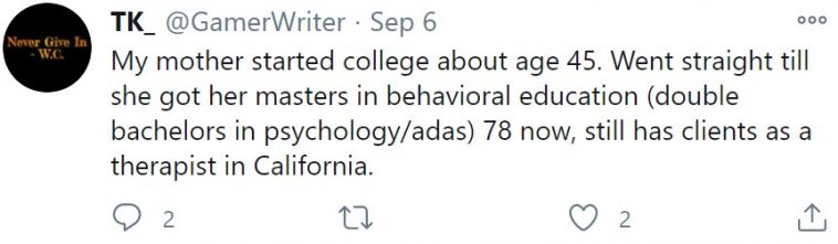 This person shared her two incredible encounters with women way over the typical college student age who decided they need to upgrade their education. They both followed their desire and achieved success.