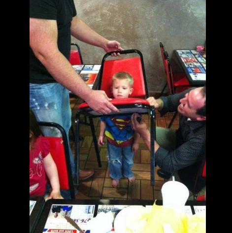 Of course, the kid does not find the whole thing to be funny, because he is the one who got stuck in the chair!