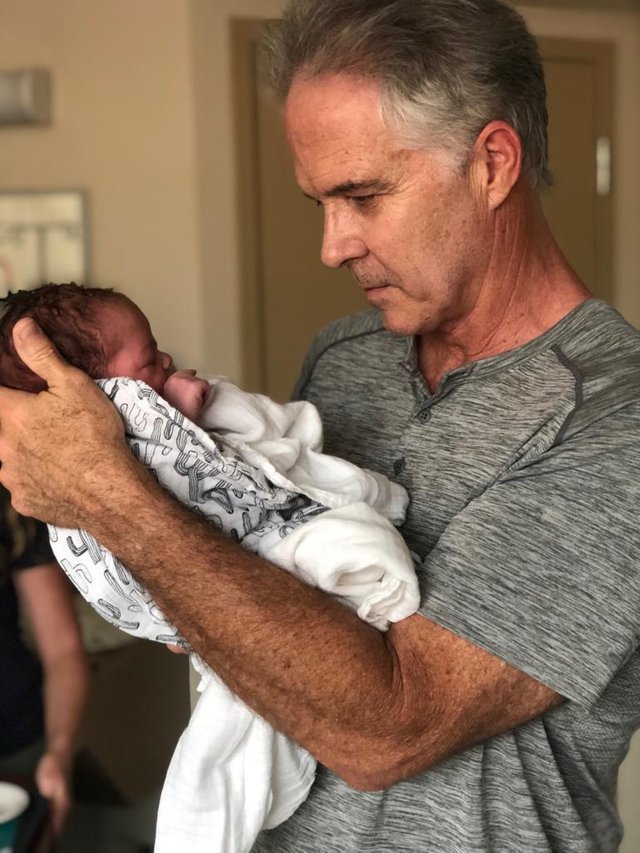 The proud grandfather got to hold his first grandson for the first time and you can feel how proud he is!