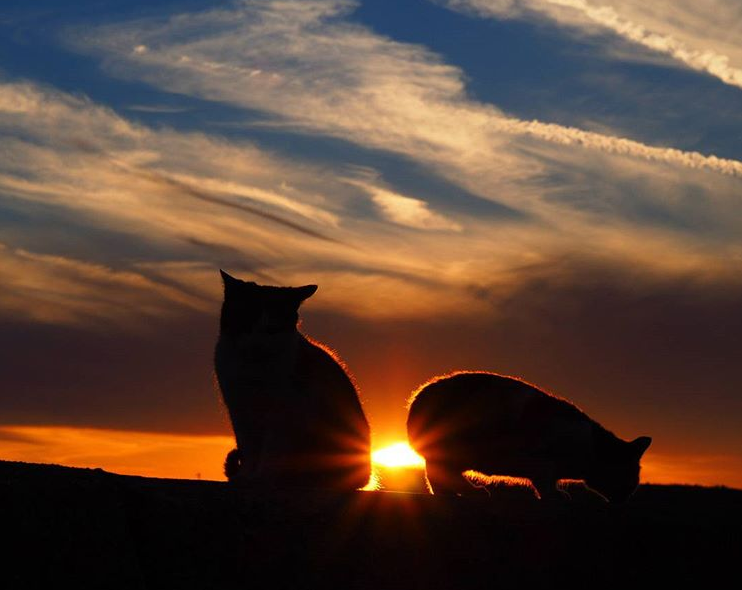 The silhouettes of these felines and the sunset behind them turn this photo into a work of art!