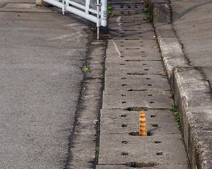 This cat obviously decided to use the canal as a walkway but its tail gave away its location.