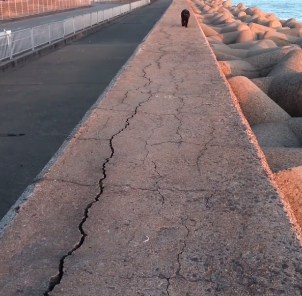 Walking by the sea at sunset is always a good idea and these cats probably do it on a daily basis.
