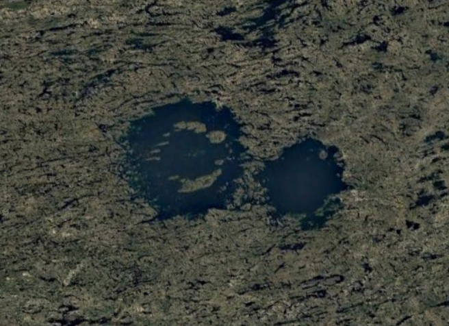 10. This Canadian lake is actually formed by a couple of craters