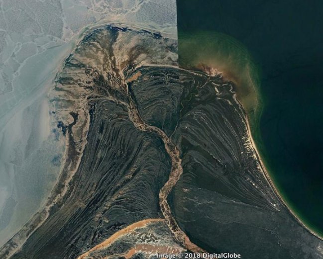 This image shows how Rio Grande enters the Mexican gulf and you can see the merging waters.