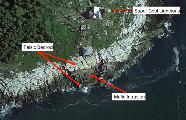 It is in Penobscot Bay and the rock formations seen here are a sign of previous volcanic activity.