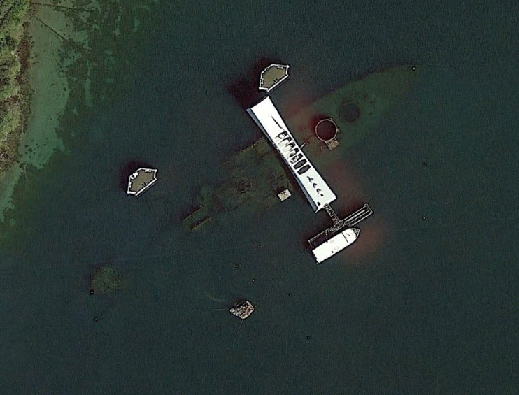 This image shows the USS Arizona wreck and the memorial built above it.