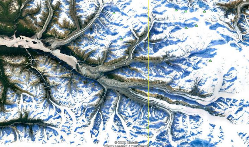 These alpine glaciers created a stunningly beautiful pattern that looks like digital art.