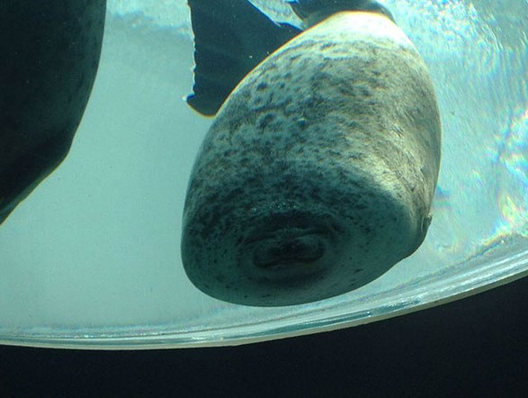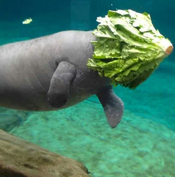 We love seeing manatees swim around and we guess this one has a hard time navigating its way around.